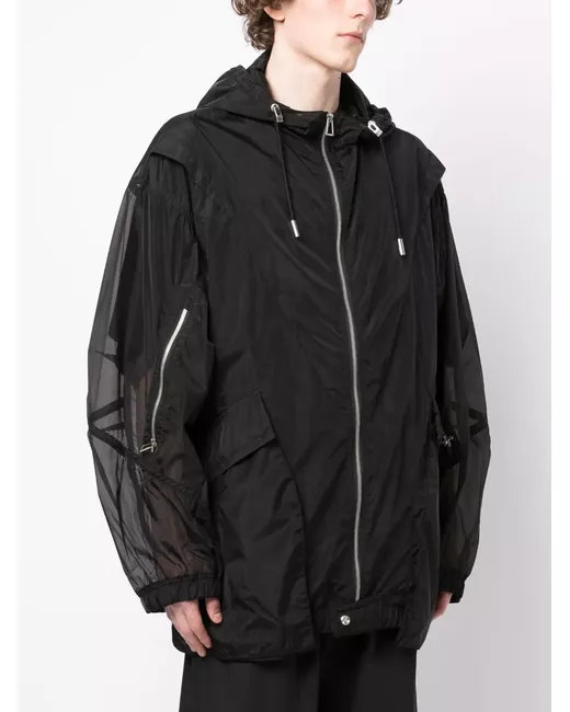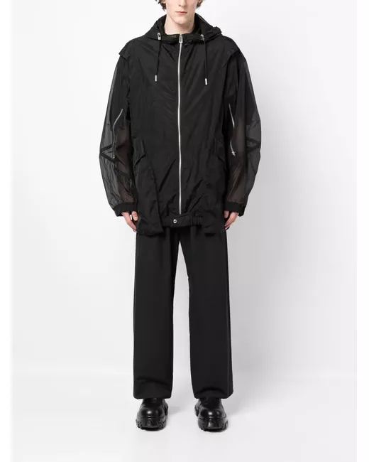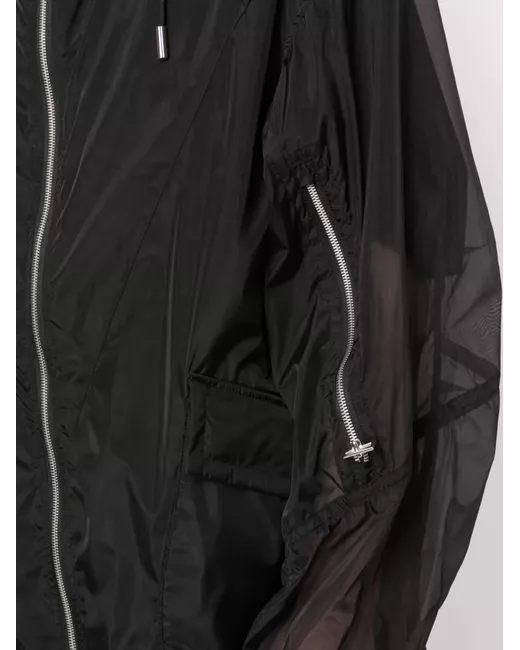 black cotton blend lightweight construction semi-sheer construction decorative zip detailing drawstring hood front zip fastening long sleeves elasticated cuffs