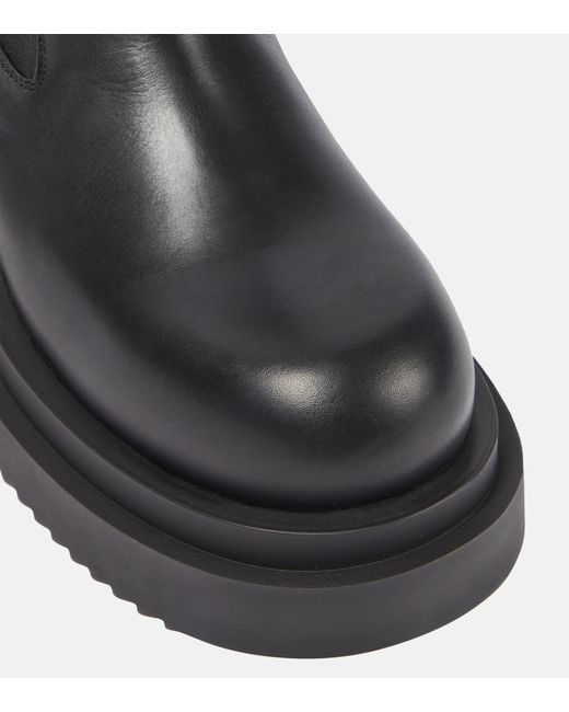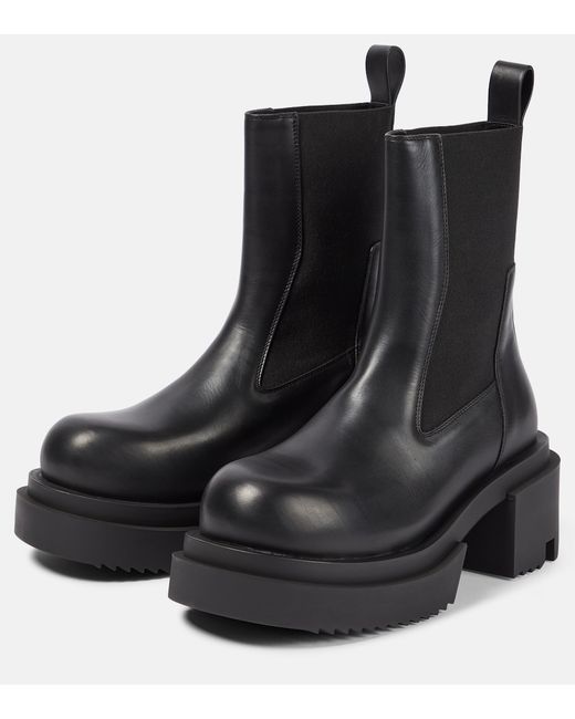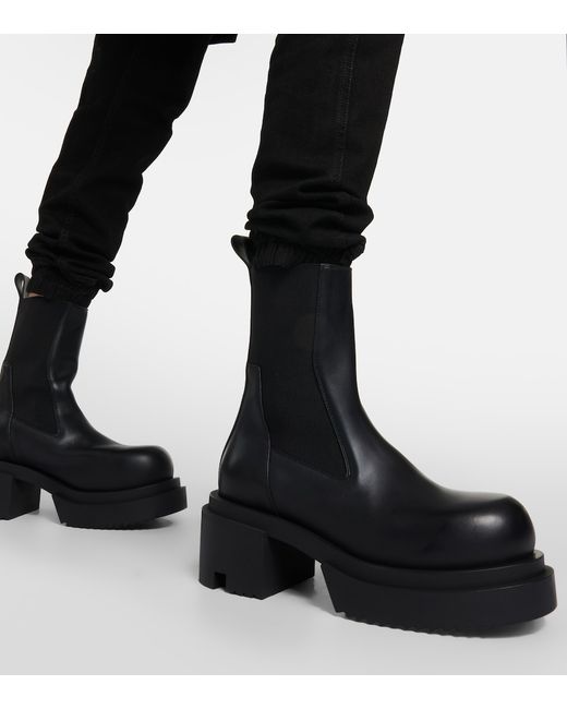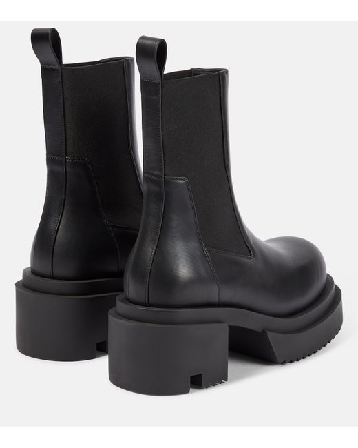 These boots from Rick Owens are made from leather to an ankle-length silhouette with elasticated side panels. They have a rounded toe, toothed rubber soles, and pull tabs.