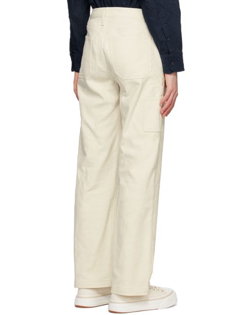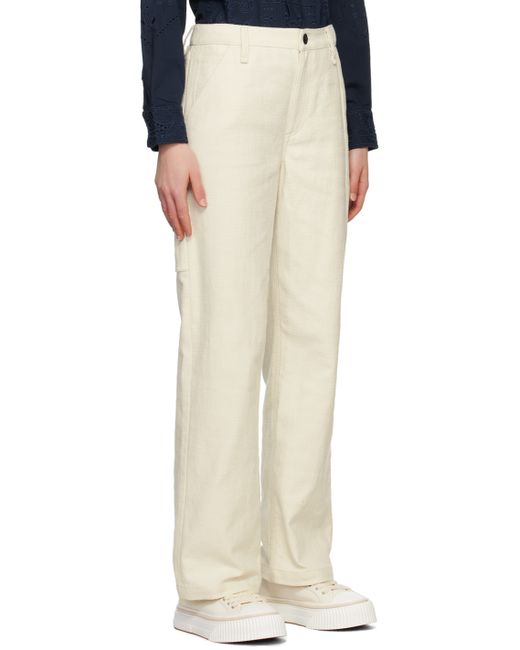 Stretch cotton- and linen-blend twill trousers. · Belt loops · Five-pocket styling · Zip-fly · Hammer loop at outseam · Utility pockets at back · Logo-engraved black hardware Supplier color: Ecru
