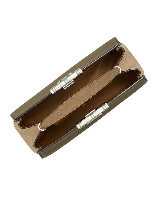 Tory Burch's Eleanor satchel is crafted of pebbled leather and topped with silvertone logo hardware. Top handle Adjustable, removable crossbody strap Interior: two compartments, one flap pocket Magnetic snap closure Leather Lining: 100% polyurethane Trim: suede Imported SIZE About 12.5"W x 12.5"H x 8.25"D Top handle, about 5" drop Adjustable, removable crossbody strap, about 15.75" ABOUT THE BRAND Since debuting her brand in 2004, New York-based designer Tory Burch has made an impact on the fashion world with her handbags and shoes, and playful-yet-polished clothing. Today, Burch remains inspired by color and travel, with her vibrant collections bursting with prints, and her instantly recognizable double-T logo drawing from Moroccan architecture. Handbags - Tory Burch Handbags > Tory Burch > Saks Fifth Avenue > Barneys. Tory Burch. Color: Wild Mushroom.