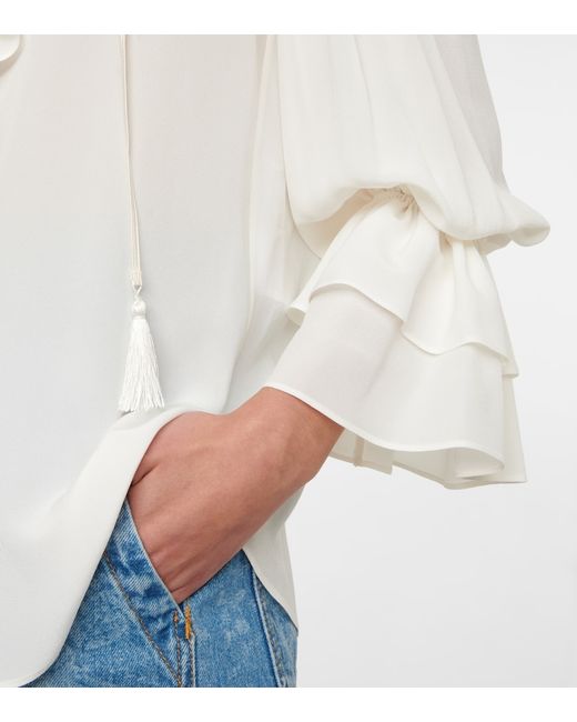 Material: 100% silk. Care instructions: dry clean. Made in Italy. Elasticated cuffs. Self-tie collar.