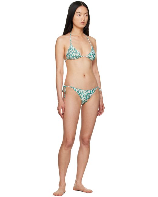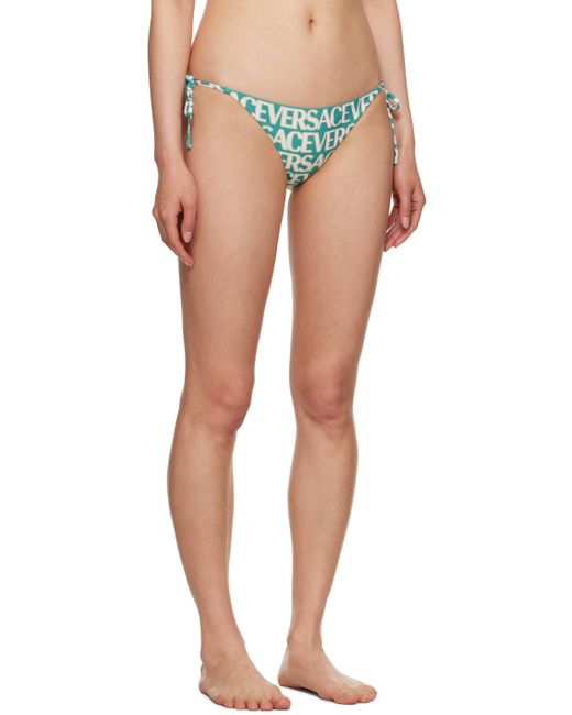 Stretch polyester jersey bikini bottom. Logo printed throughout. · Self-tie straps at sides · Full stretch polyester jersey lining Supplier color: Turquoise