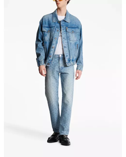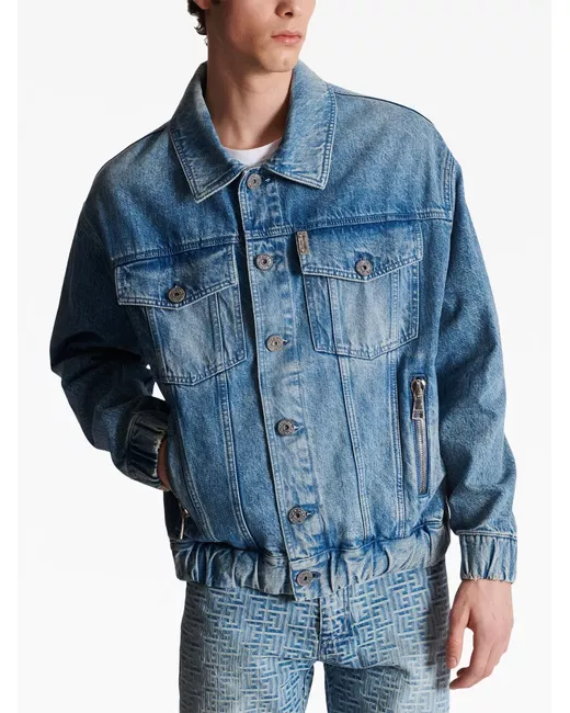 blue/red/black cotton denim stonewashed logo patch to the rear classic collar front button fastening long sleeves two chest flap pockets two side zip-fastening pockets elasticated waistband