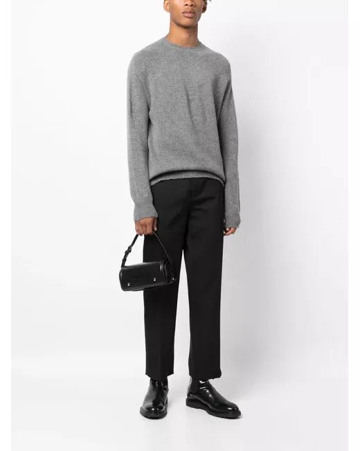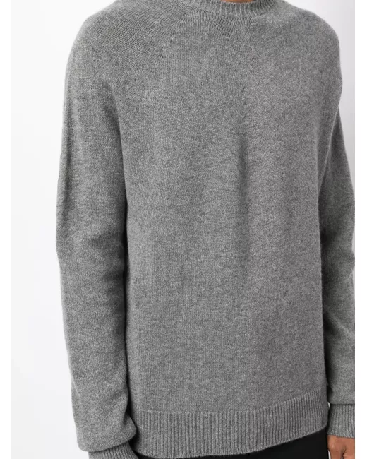 medium grey cashmere seamless round neck long sleeves ribbed cuffs and hem straight hem