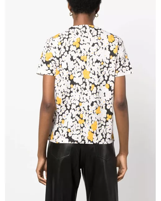 white/black/light orange cotton all-over floral print embroidered logo at the chest crew neck short sleeves straight hem