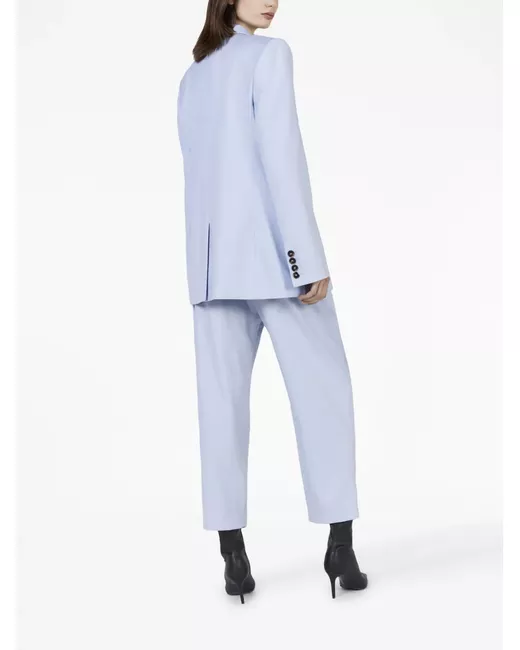 light blue wool flannel buttoned-cuff sleeves notched collar front button fastening long sleeves two front welt pockets chest welt pocket central rear vent