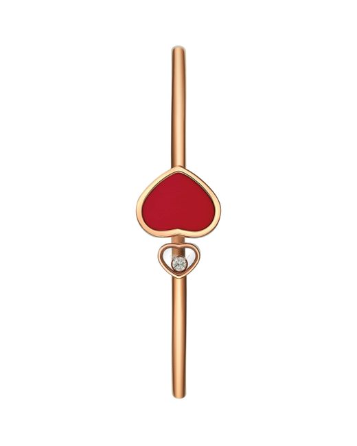 Few motifs boast the evocative power of the heart. Ever unable to resist a design with deeper meaning, Chopard calls upon the shape as the foundation of its Happy Hearts collection, employing the universal symbol of intimacy, affection and generosity to echo its own values. Wear this 18-karat rose gold bangle to pledge your allegiance to the heart and House - it sees the motif repeated twice, the larger rendered in red stone and the smaller cradling a twinkling moving diamond.