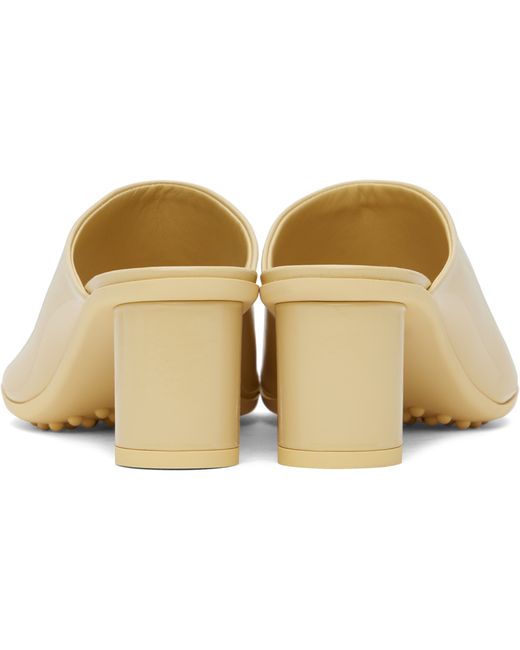 Polished lambskin slip-on heeled sandals in beige. · Open toe · Logo embossed at cushioned footbed · Covered block heel with rubber injection · Treaded rubber sole - Heel: H2.25 in Supplier color: Rubber