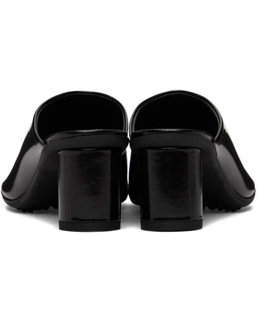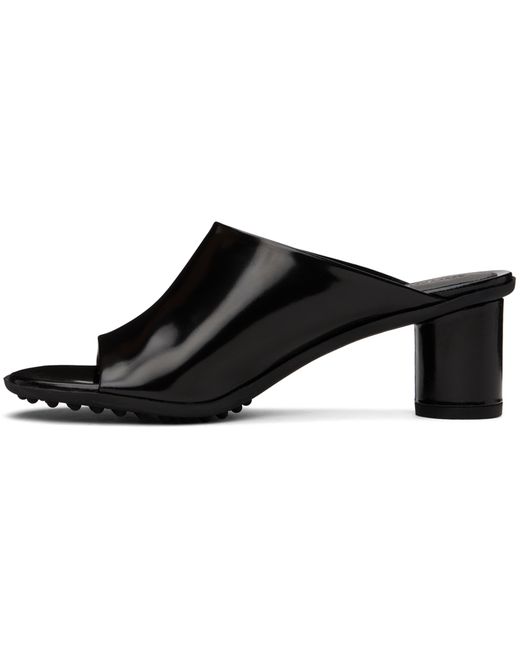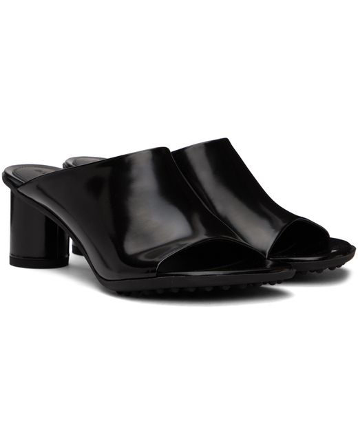 Polished lambskin slip-on heeled sandals in black. · Open toe · Logo embossed at cushioned footbed · Covered block heel with rubber injection · Treaded rubber sole - Heel: H2.25 in Supplier color: Black