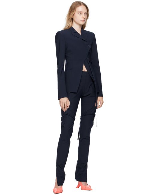 Stretch polyester- and virgin wool-blend delaine trousers. · Zip closure at side · Self-tie straps and cutouts at outseams · Zip vent at cuffs Supplier color: Navy