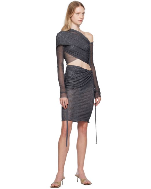 Semi-sheer stretch polyester mesh skirt. Draping, ruching, and printed logo pattern throughout. · Layered and wrap construction · Lettuce edge at hem Supplier color: Logo gray