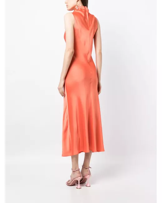 Feather-Trim Long-Sleeve Satin Maxi Dress