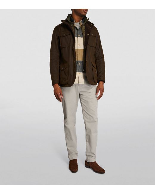 Everything that's classic about a Barbour waxed jacket comes together in the Ogston, a sleek, crisp look that's perfect for the countryside gentleman. There are four front pockets to store dog treats, leads and umbrellas so that anything your morning walk throws at you, you know you're equipped to handle, and an integrated quilted vest ensures you're always warm.