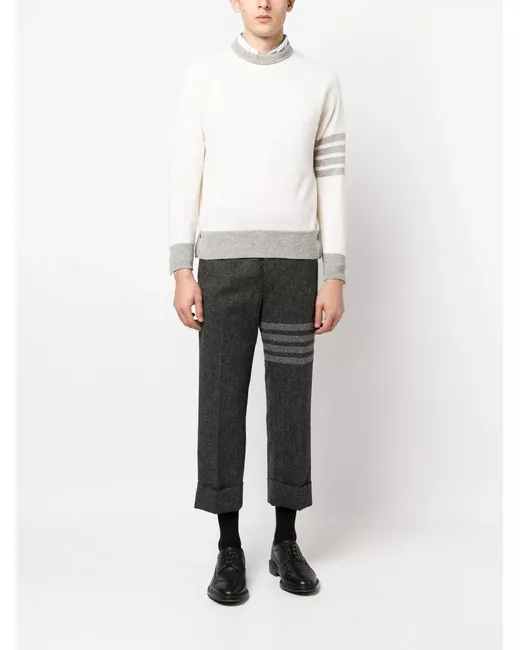 grey tweed signature 4-Bar stripe drop crotch front button and zip fastening cropped leg