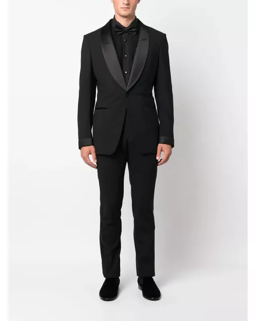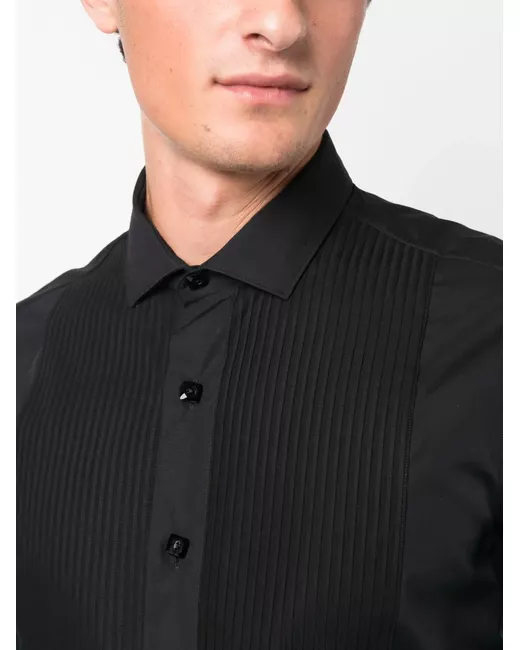 black cotton ribbed bib detail Swarovski buttons classic collar front button fastening long sleeves buttoned cuffs curved hem