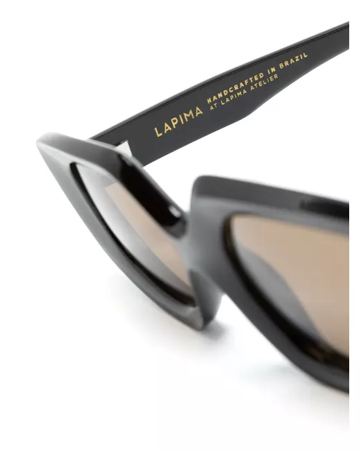 black acetate internal logo stamp lens decal square frame tinted lenses straight arms curved tips These glasses come with a protective case.