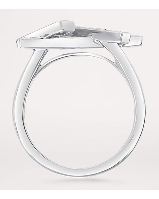 Think you know what a diamond ring looks like? Think again. Graff's take on the gemstone in the Threads ring is wholly modern, embracing a geometric elegance that features a trio of criss-crossing white gold bars, each punctuated with a combination of pavé and baguette-cut diamonds. Offering a touch of spontaneity and an element of surprise, this style's contemporary nature is where its desirability lies.