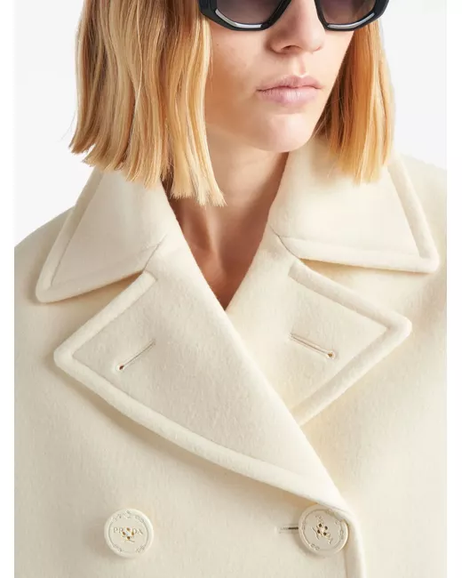 light beige wool notched collar double-breasted button fastening long sleeves two side slit pockets straight hem