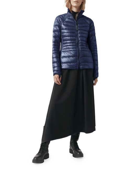 Quilted puffer jacket with contrast paneling at sides and sleeves. Stand collar Long sleeves with thumb holes Zip front Contrast: 55% polyester/39% nylon/6% spandex Lining: 100% nylon 100% nylon 90% Hutterite white goose down/10% down feathers Machine wash Made in Canada SIZE & FIT About 25" from shoulder to hem Model measurements: 5'10" tall Model is wearing a US size Small ABOUT THE BRAND Since its launch in 1957, Canada Goose's durable, ultra-warm parkas have become cold-weather staples worldwide. Using strong technical fabric, sustainably sourced down insulation and fur trim, the coats are designed to withstand extreme temperatures. Adapting to all seasons, the label designs luxe lightweight jackets, vests and accessories-and even cozy knit layers. Outerwear And Swimwear - Canada Goose > Canada Goose > Saks Fifth Avenue > Barneys. Canada Goose. Color: Atlantic Navy. Size: Small.
