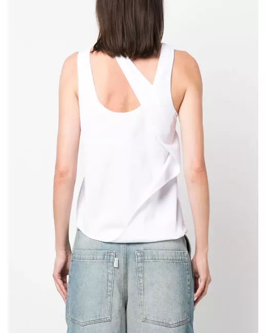 optical white stretch-cotton ribbed knit asymmetric design U-neck crossover shoulder straps sleeveless
