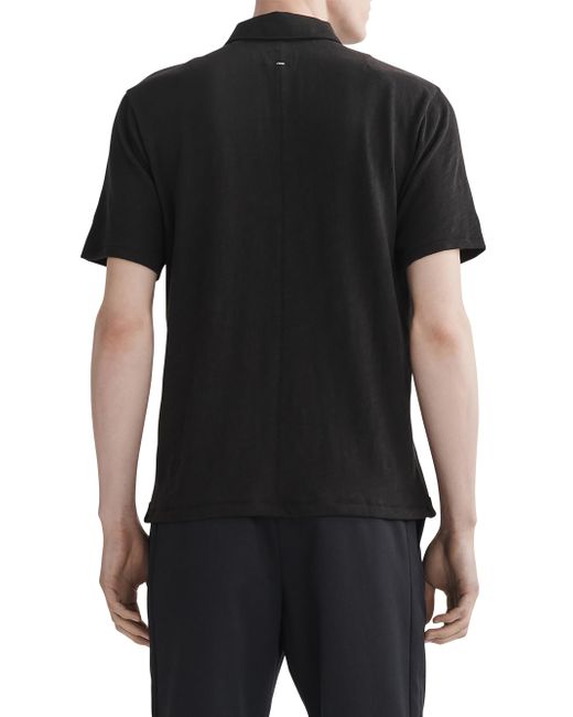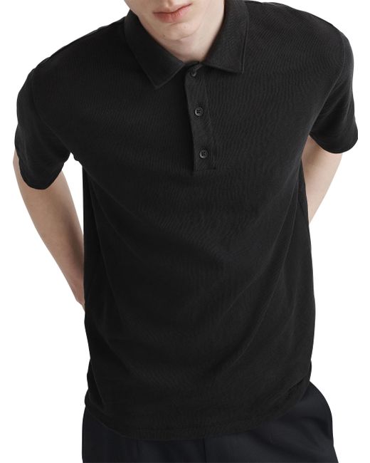 This Flame polo shirt from rag & bone is crafted of cotton and sports a spread collar with a three-button placket. Spread collar Short sleeves Three-button placket 100% cotton Machine wash Imported SIZE & FIT About 27" from shoulder to hem Model measurements: 6'2'' tall, 40'' chest Model is wearing US size Medium ABOUT THE BRAND In 2002, rag & bone founder Marcus Wainwright combined his British heritage with a downtown-New York aesthetic to set the tone for the label. At the heart of the edgy-yet-laid-back brand is its focus on quality craftsmanship and attention to detail. The epitome of cool, off-duty style, it's no wonder the signature denim and easy knits are favored by many. Mens Denim & Contemp - Contemp Denim And Bottom > Rag & Bone > Saks Fifth Avenue > Barneys. rag & bone. Color: Black. Size: Medium.