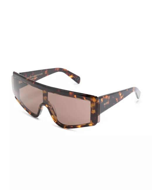 Havana brown acetate tortoiseshell effect logo print at the arm geometric frame brown tinted lenses oversize arms straight tips These glasses come with a protective case.