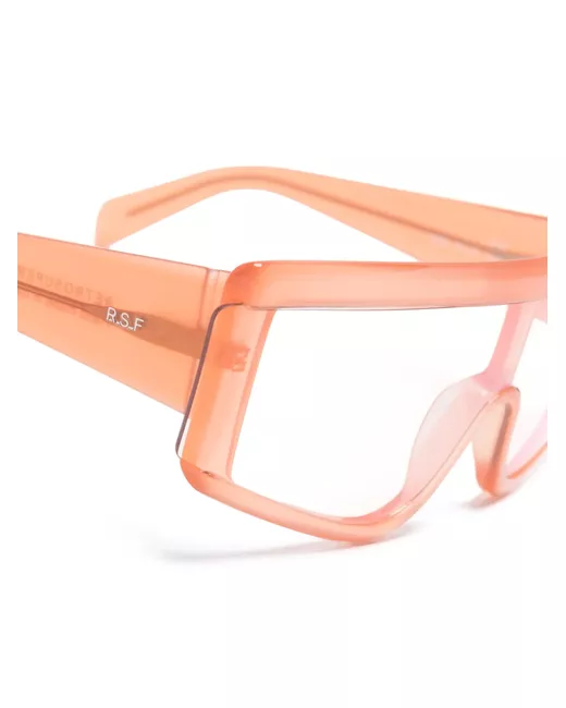 orange acetate logo print at the arm geometric frame tinted lenses oversize arms straight tips These glasses come with a protective case.