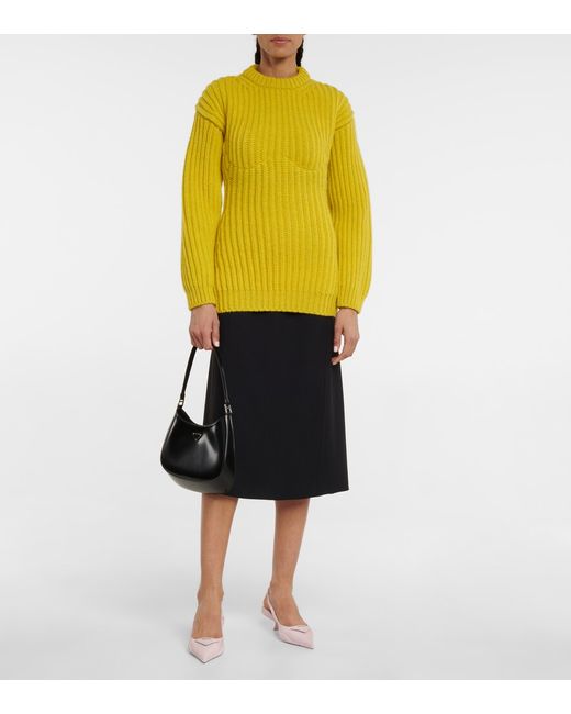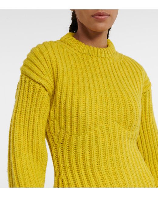 Made in Italy. Material: 100% virgin wool. Designer color name: Limone. Material III: 100% silk. Closure: hook-fastening back. Material II: 100% silk. Underwired cups.