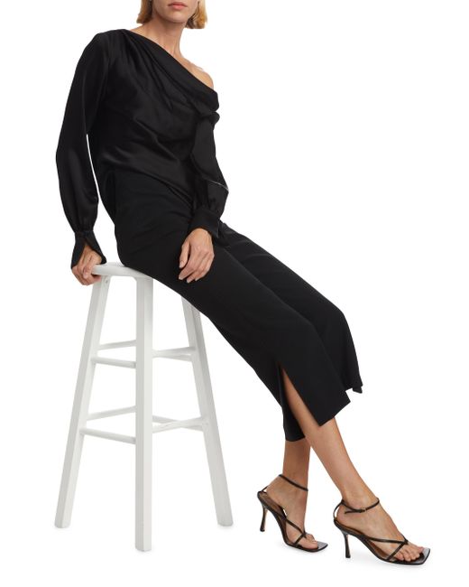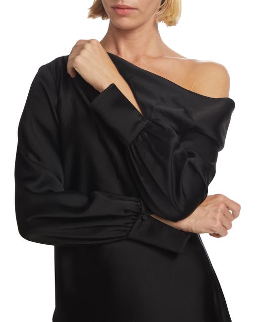 Crafted of lustrous satin, SIMKHAI's long-sleeve Alice top is cut in an off-the-shoulder silhouette and complete with foldover detailing at the neckline. Off-the-shoulder neckline Long sleeves, barrel button cuffs Pulls over 89% acetate/11% polyester Dry clean Imported SIZE & FIT About 26.5" from shoulder to hem Model measurements: 5'10" tall Model is wearing a US size Small. Contemporary Sportswear - Workshop > Simkhai > Saks Fifth Avenue > Barneys. SIMKHAI. Color: Black. Size: Medium.