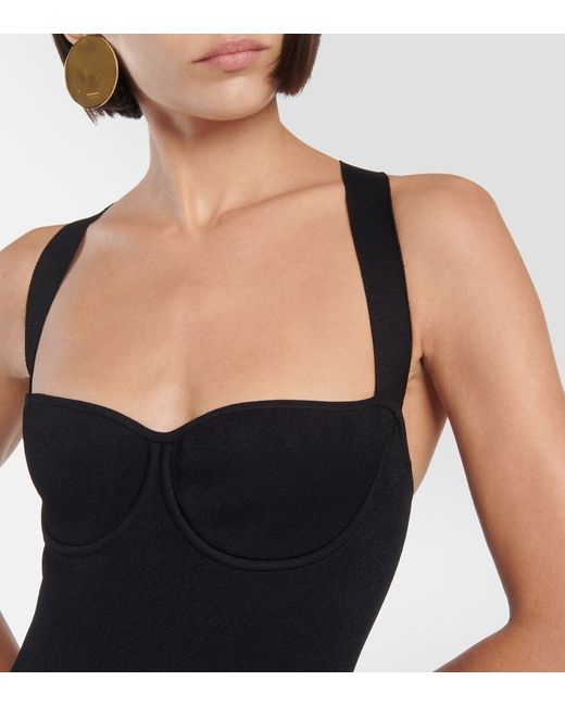 For a daring evening look, opt for the Diana jumpsuit from Galvan. Made from sculpting knit fabric, this style hugs the body with a slim fit and has an alluring cutout between the bust.