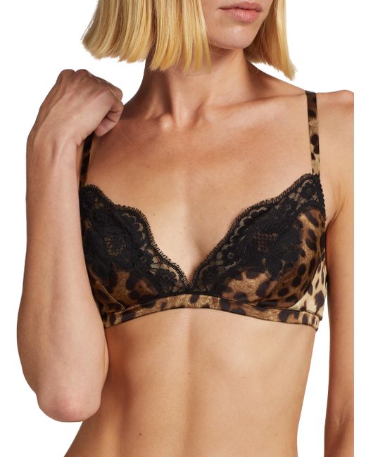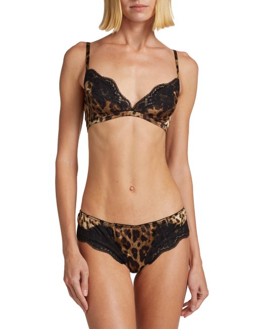 Dolce & Gabbana's leopard triangle bra is crafted of silk blend, featuring a V-neck, adjustable straps, and lace trim. V-neck Adjustable straps Back hook-and-eye closures 80% silk, 12% cotton, 8% elastane, 3% polyamide Hand wash Made in Italy SIZE & FIT Model measurements: 5'10" tall Model is wearing a US size 4 ABOUT THE BRAND Mediterranean-inspired prints and luxe silhouettes are mainstays of the Italian label, launched in 1985 by Domenico Dolce and Stefano Gabbana. The eye-catching line includes a lineup of sleek clothing and maximalist shoes and handbags. Lingerie - Designer Foundations > Dolce & gabbana > Saks Fifth Avenue > Barneys. Dolce & Gabbana. Color: Leopard. Size: XL.