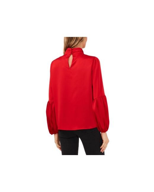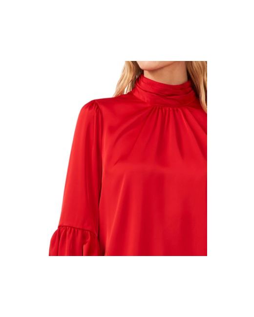 Women's Red Blouson-Sleeve Mock-Neck Blouse