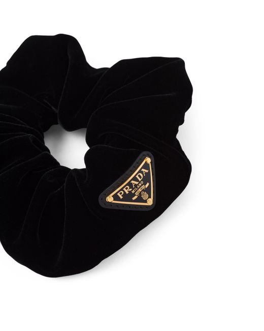 Since the 1910s, the Prada Triangle has been one of the House's most recognisable signifiers, being synonymous with quality and longevity. With the creation of its Re-Edition line, the brand continues to refresh its legacy and archives in an innovative way that reduces harm to the planet. The label's signature motifs and fabrics are regenerated for every kind of offering, including this beguiling - and undoubtedly coveted - cotton velvet scrunchie.