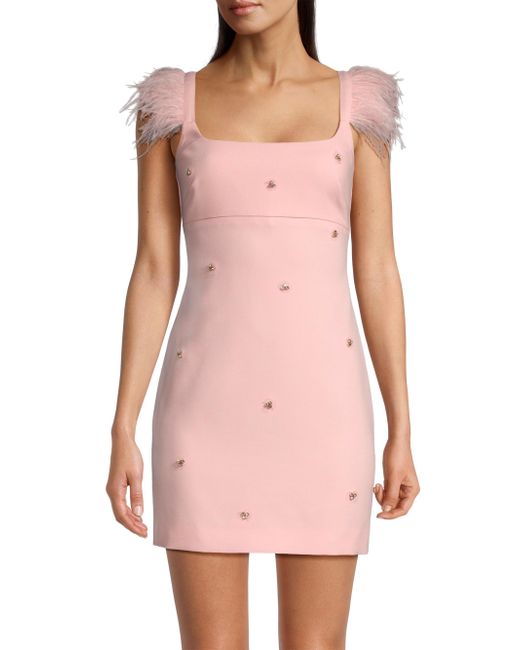 Cut in a formfitting silhouette, the Cameron minidress from LIKELY features ostrich feather cap sleeves and delicate crystal detailing at the front. Plunging square neck Cap sleeves Plunging scoopback Concealed back-zip closure 67% polyester/27% rayon/6% spandex Trim: Ostrich feathers Lining: 100% polyester Dry clean Imported SIZE & FIT About 33" from shoulder to hem Model measurements: 5'10" tall Model is wearing a US size 4. Dress Collections - Contemporary Evening > Likely > Saks Fifth Avenue > Barneys. Likely. Color: Rose Shadow. Size: 4.