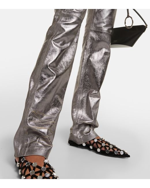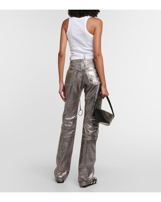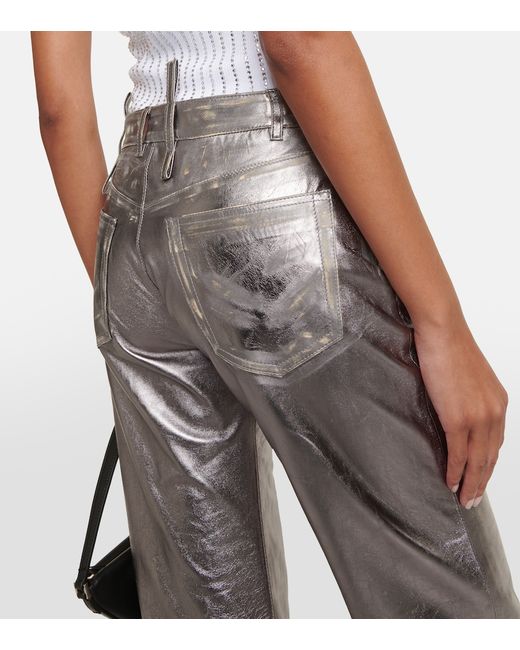 Material: 100% lamb leather. Care instructions: specialist clean. Made in Romania. Designer color name: Silver. Lining: 100% viscose. Closure: concealed button placket. Pockets: five pockets.