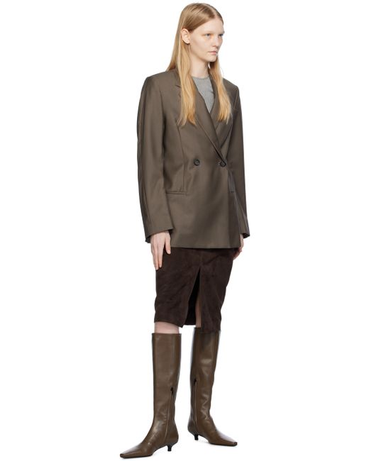 Plain-woven wool blazer. · Notched lapel · Double-breasted button closure · Welt pockets · Darts at front · Padded shoulders · Twin vents at back hem · Welt pocket at interior · Full viscose satin lining Supplier color: Ash