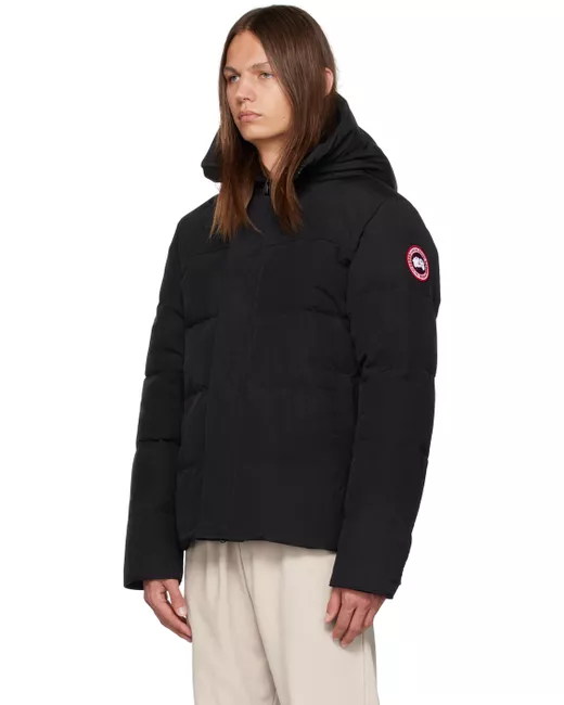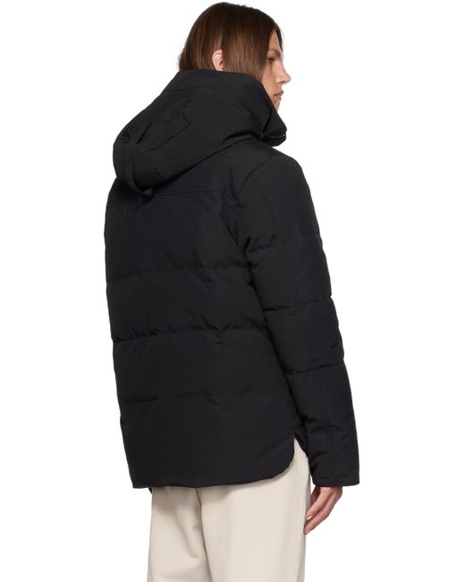 Water-repellent RDS-certified down-filled Arctic Tech® polyester- and cotton-blend taffeta jacket. · Detachable trim and cinch strap at hood · Funnel neck · Press-stud placket and two-way zip closure · Zip pockets · Droptail hem · Vented side seams · Logo patch at sleeve · CORDURA® trim at cuffs · Inset rib knit cuffs · Zip pocket and patch pockets at interior · Elasticized shoulder straps at interior · Full nylon taffeta lining Supplier color: Black Fill: 80% duck down, 20% duck feather.