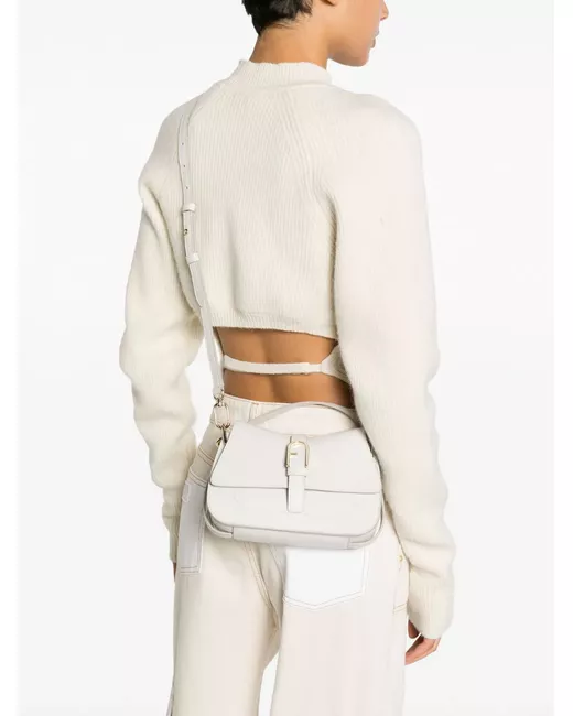 ivory white calf leather Arch logo plaque gold-tone hardware foldover top with magnetic fastening single top handle adjustable detachable shoulder strap main compartment rear patch pocket internal logo patch internal patch pocket