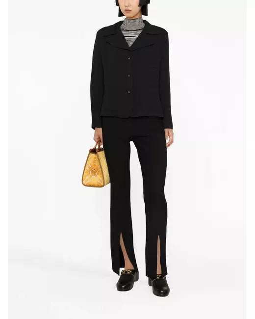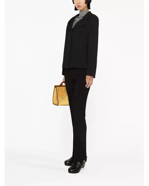 black notched lapels front button fastening long sleeves chest patch pocket two front patch pockets straight hem
