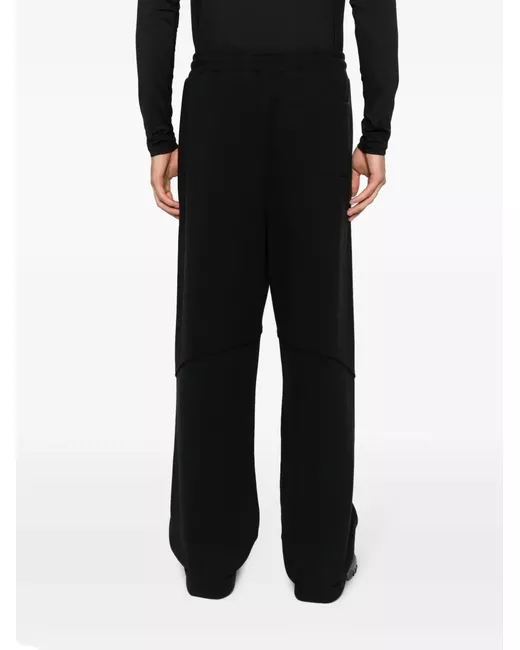 black cotton elasticated drawstring waistband mid-rise straight leg two side inset pockets rear patch pocket