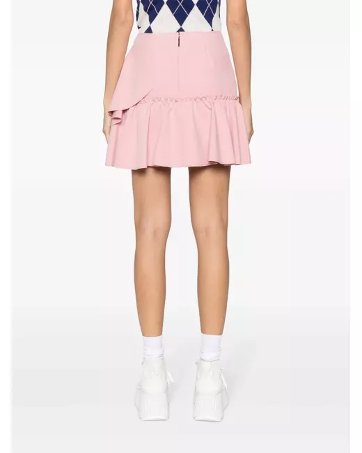 ultra pink stretch-design ruffled trim high-waisted flared concealed rear zip fastening thigh-length