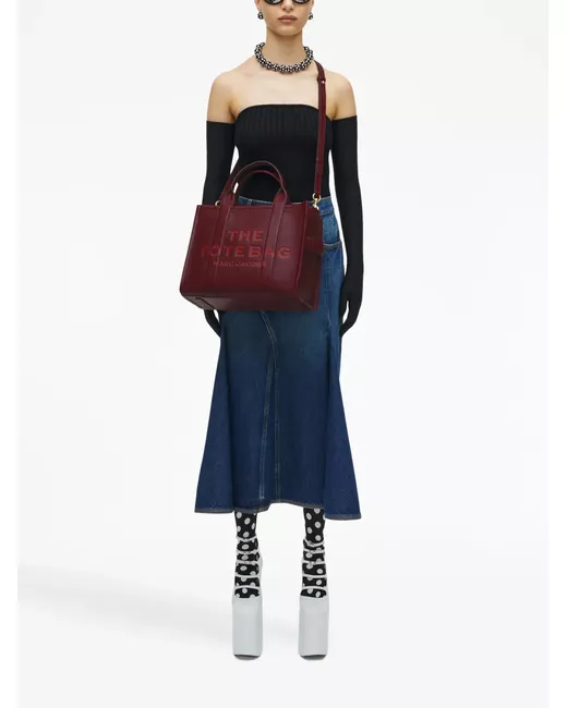 burgundy/brick red calf leather pebbled texture debossed logo to the front and rear gold-tone hardware adjustable detachable shoulder strap flat top handles top zip fastening main compartment multiple internal slip pockets internal logo stamp