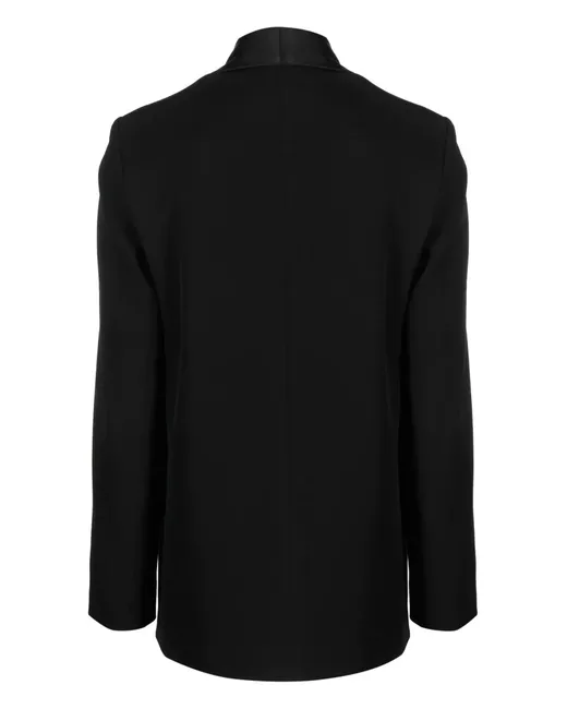 black crepe texture front button fastening shawl satin lapels long sleeves dart detailing two front flap pockets full lining straight hem