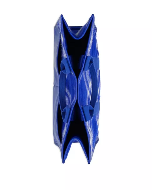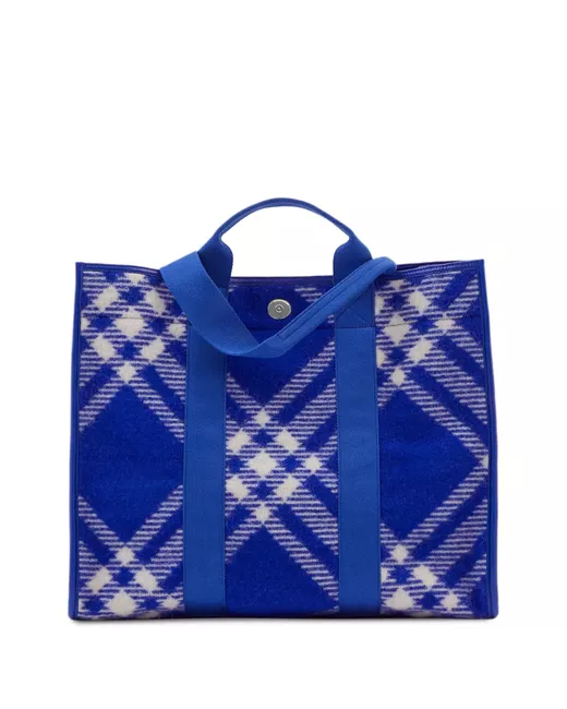 royal blue wool blend check pattern silver-tone hardware two top handles main compartment