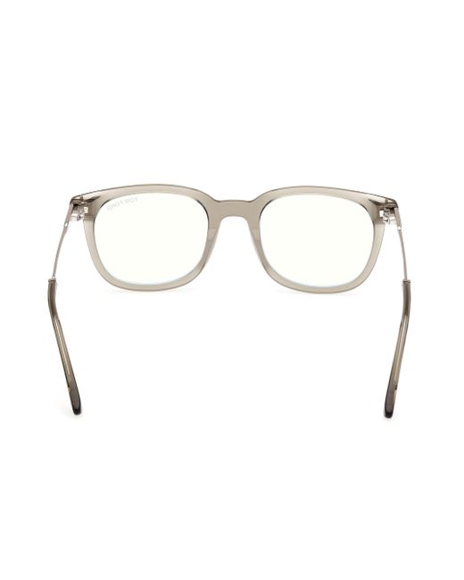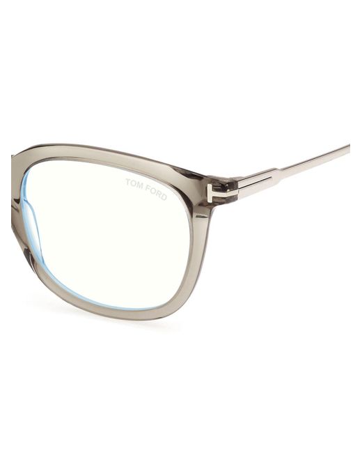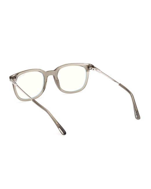 Tom Ford's eyeglasses feature a sleek rectangular silhouette. Crafted of acetate and metal, this pair is adorned with the label's signature T logo at the temples. Solid lenses Acetate/metal Made in Italy SIZE 50mm lens width 21mm bridge width 145mm temple length ABOUT THE BRAND After 10 years of serving as the Creative Director for several international luxury fashion houses, Tom Ford launched his own line of optical frames, sunglasses and grooming in 2005. The following year he debuted menswear, and in 2010, women's ready-to-wear. His sleek, tailored aesthetic has since catapulted him to mega-brand status. Soft Accessories - Sunglasses > Tom Ford > Saks Fifth Avenue > Barneys. TOM FORD. Color: Transparent Olive Blue.