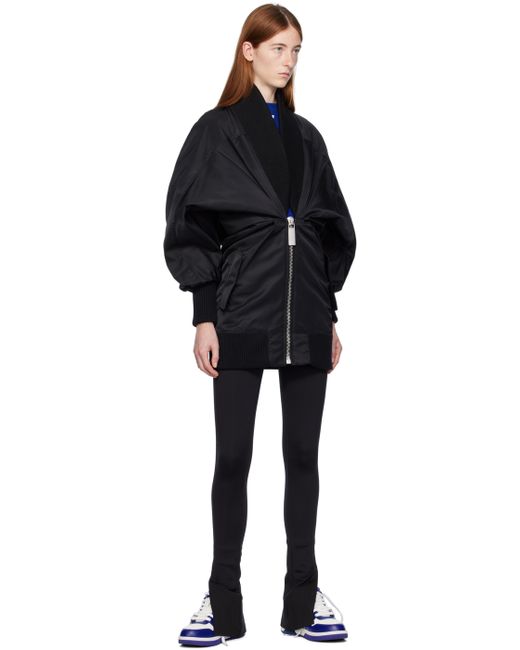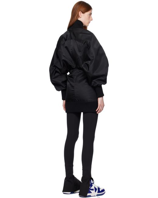 Insulated nylon twill dress. · Rib knit shawl collar, hem, and cuffs · Zip closure · Flap pockets · Gathering at front and back · Puff sleeves · Full logo-woven viscose satin lining · Logo-engraved silver-tone hardware Supplier color: Black