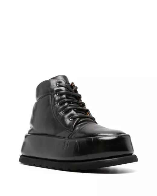 black calf leather front lace-up fastening round toe branded insole ankle-length platform sole