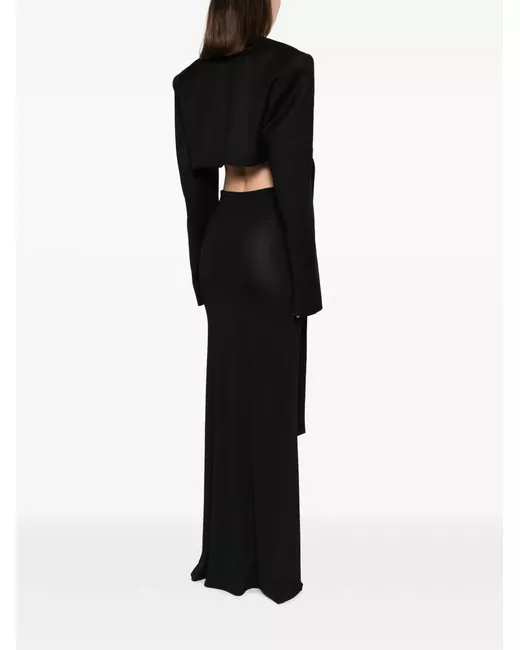 black draped strap detailing open front extra-long sleeves straight hem cropped