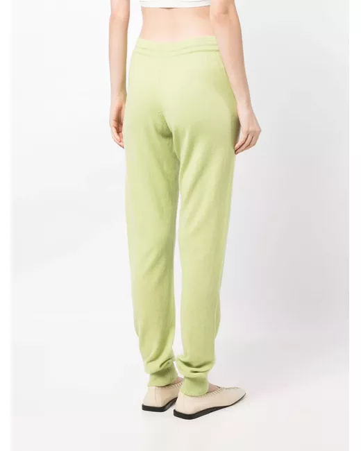 asparagus green cashmere knitted construction embroidered logo at the leg elasticated drawstring waistband tapered leg elasticated ankles two side slash pockets