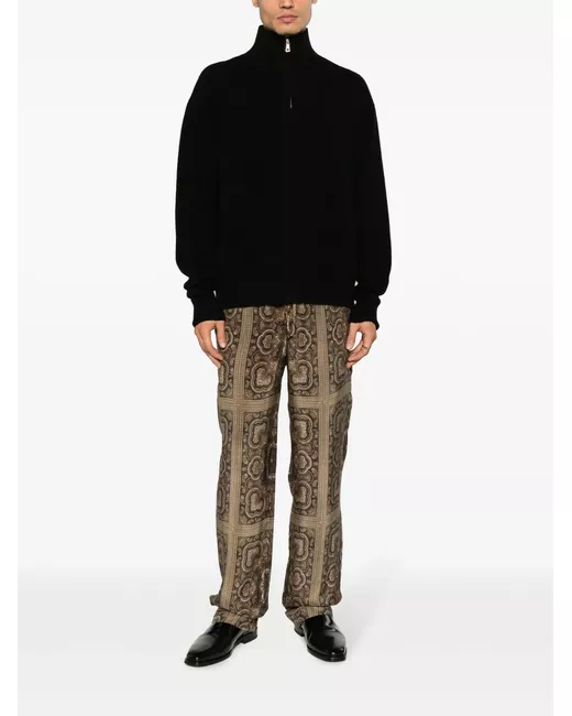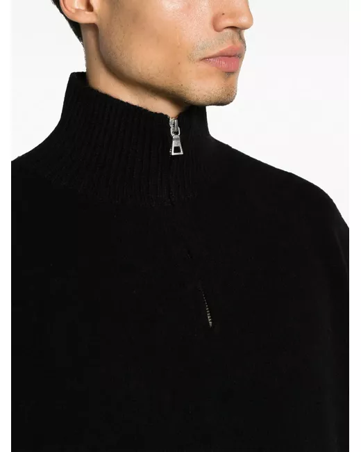 black cashmere knitted construction ribbed trim high neck half front zip fastening long sleeves straight hem